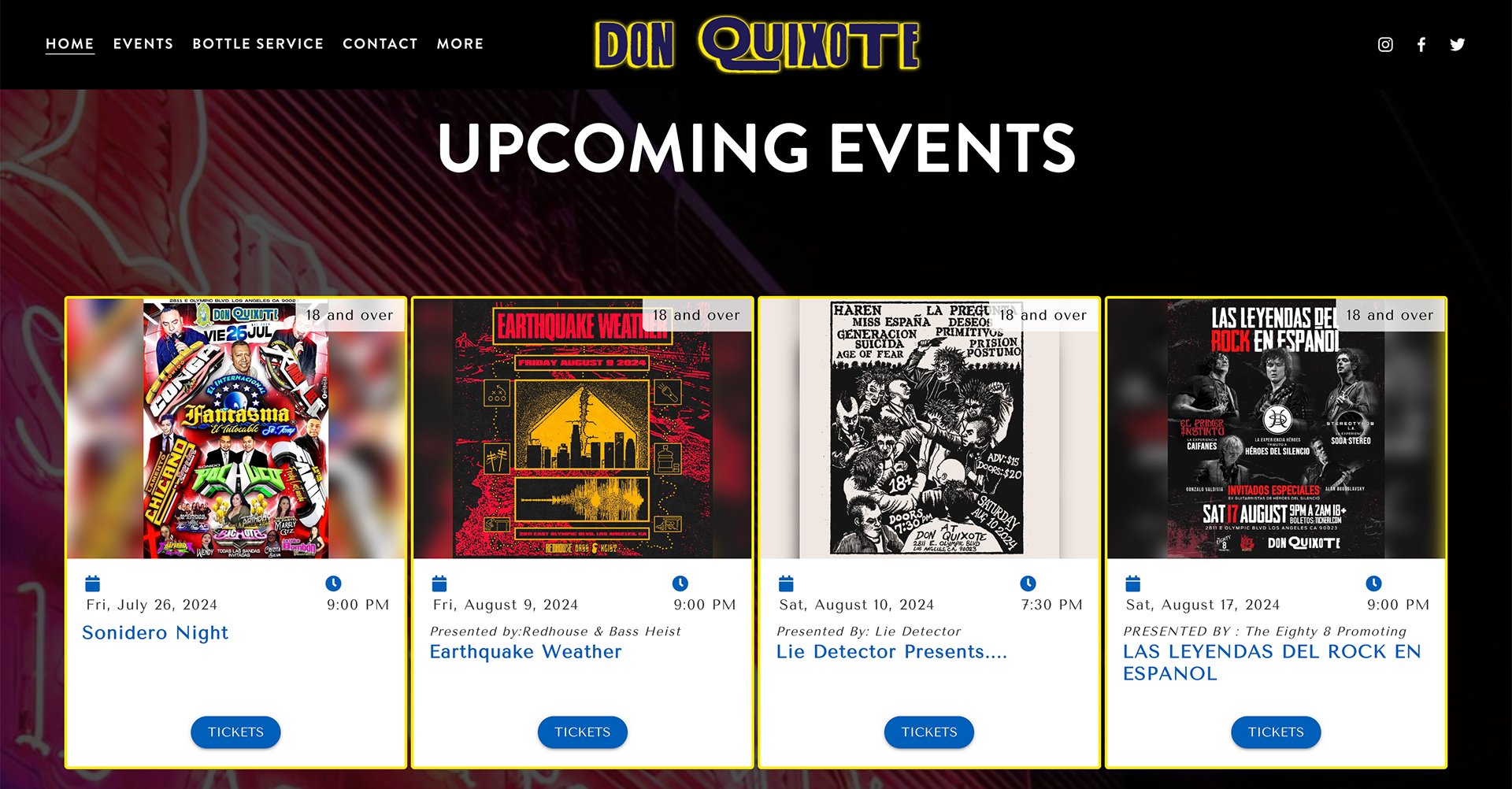 For Don Quixote’s website I provided website mockups that I then used as a template to create a Wordpress website via Elementor. The website also has a custom API design for their events page and a fully Spanish version of the website.